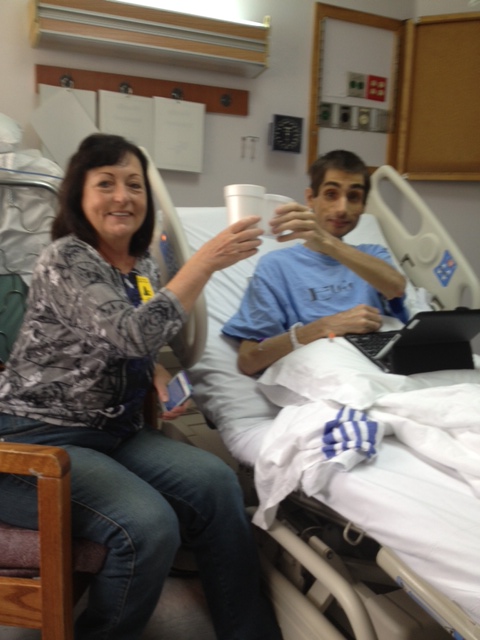 I began my liquid diet on Saturday. Here’s my mom sharing a water toast with me.